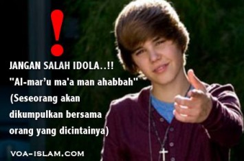 Remaja cerdas so pasti pilih acara yang berkualitas demi meningkatkan iman dan takwa, bukan sebaliknya. Jadi, udah deh gak usah ikut-ikutan demam si Beiber. Dia gak bisa menyelamatkan kamu dari panasnya siksa neraka kok. Rugi berat deh! [ria fariana/voa-islam.com]
